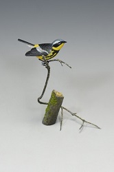 Signature Series are world competition grade sculptures with the highest attention to detail and considered the pinnacle of my art. Accuracy and craftsmanship are only one aspect. Many of these sculptures tell a story, and all illustrate the natural environment in which each species lives. Hundreds of hours are required to research and complete each of these one of kind sculptures. All the birds are created with various types of wood and textured to replicate actual feathers. Plants and branches are typically created from brass, bronze and steel. The entire sculpture is hand painted with acrylic and oil paints to give them a life like appearance.